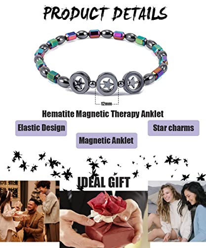 BOMAIL - BOMAIL Hematite Magnetic Therapy Anklet Bracelet -Magnetic Slim Hematite Anklet Relieve Joint Pain Anti Swelling Anklet Circle Star Magnetic Color Anklet for Women Men, Stone, hematite