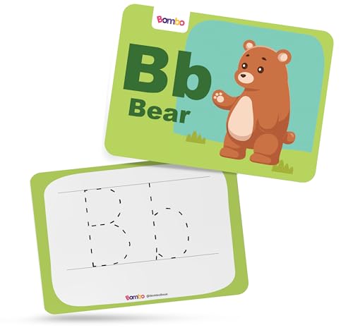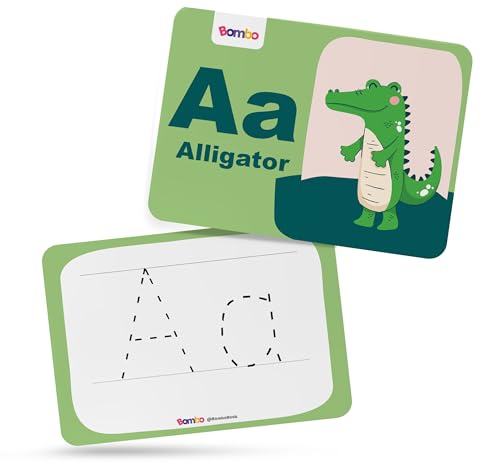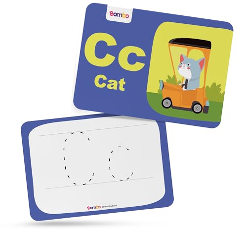 Generic - BOMBO - Flash Card English Letters for Kids - 26 ABC and English Words Learning Cards - Erasable Waterproof Learning Cards - Preschool Learning Aids - Size 16x21cm