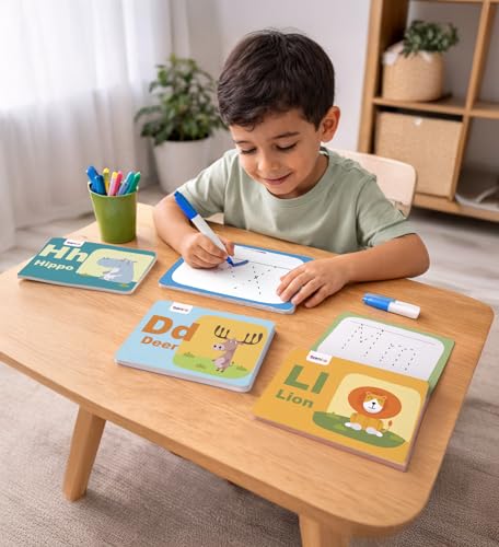 - Write and wipe practice: write-on/wipe-able cards allow the child to practice in English lettering and reuse many times.