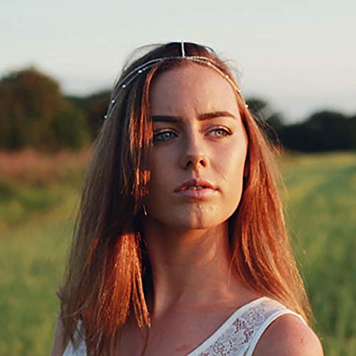 Bomine - بوماين بوهو مطرز سلسلة شعر غجرية مهرجان مجوهرات الزفاف أغطية الرأس إكسسوارات الشعر للنساء والفتيات (فضي)