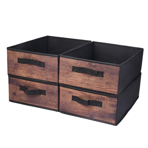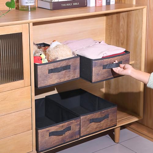 BOMKEE - صندوق تخزين قابل للطي كالاكس من بومكي، صناديق تخزين مكعبة للتخزين لغرفة النوم وغرفة المعيشة، بيج (4 قطع، 15.4 × 11.4 × 5.5 انش)