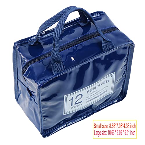 - The lunch bag adopted fashion color matching, novel style, outside use shining PU leather material, waterproof surface for easy clean and rainy days, thicken insulated design, good thermal insulation effect. This lunch bag container can be washed and reused over and over again. Own small or large capacity, large size: 10.63 * 9.05 * 5.51 inch, small size: 8.66*7.08*4.33 inch.