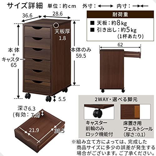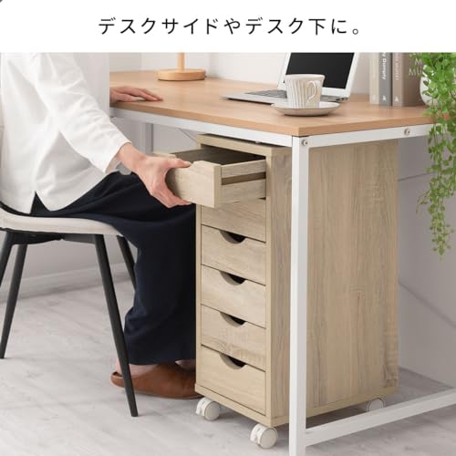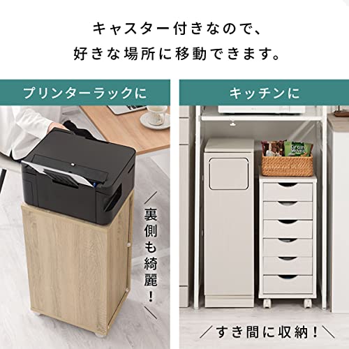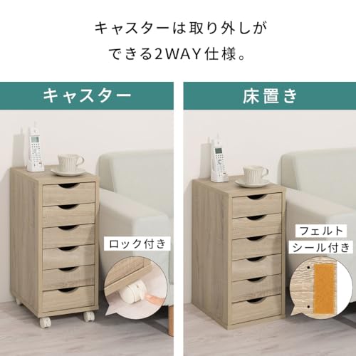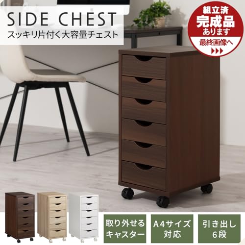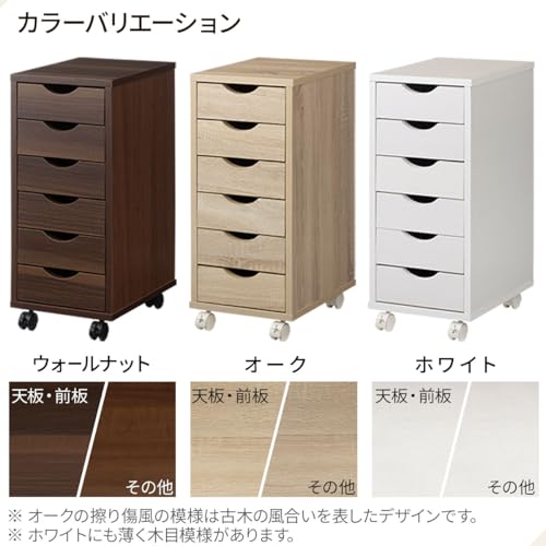ぼん家具 - Bon Furniture Side Chest with Wheels Slim, Width 11.3 x Depth 14.4 x Height 25.6 inches (28.6 x 36.6 x 65 cm), A4 Compatible, 6 Tiers, Drawers, Storage Chest, Oak