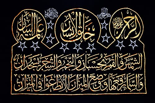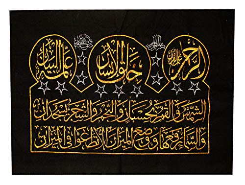 BonBalloon - BonBalloon Islamic Arabic Tapestry Calligraphy Hand Stitched Wall Hanging Quran Islam Muslim Duaa Decor Decorative Allah Prophet Golden Threads On Black Velvet Fabric 29x21.5 In( Without Any Frames )