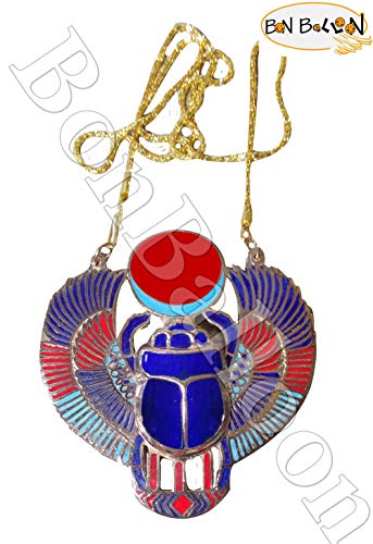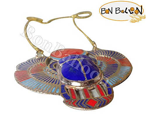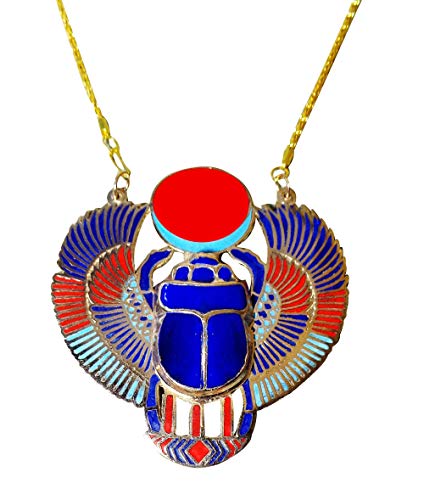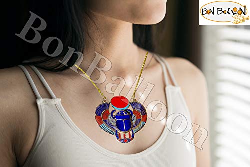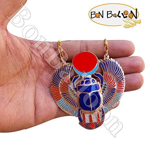 BonBalloon - bonballoon Scarab Beetle Necklace Pendant Jewelry Xl Enameled Egyptian Collar Choker Ancient Egypt Pharaoh Pharaohs Costume Accessory Jewelry Belly Dance, Brass, multi