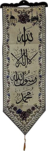 bonballoon - بساط معلق على الحائط، بتصميم اسلامي بحروف عربية، ايات قرانية وادعية ولفظ الجلالة واسم النبي محمد (صلى الله عليه وسلم) 36x12.5 بوصة، من بونبالون، متعدد الألوان