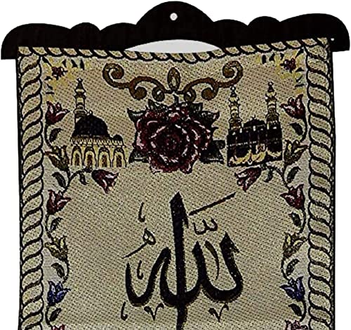 - بساط معلق على الحائط، بتصميم اسلامي بحروف عربية، ايات قرانية وادعية ولفظ الجلالة واسم النبي محمد (صلى الله عليه وسلم) 13x12.5 بوصة/ 91x32 سم. يأتي مع حامل خشبي (بدون خرز)