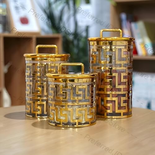Generic - طبق بونبون - طقم أطباق بونبون أكريليك ذهبي مع أغطية محكمة الغلق تحافظ على النضارة مع تقديم الحلويات والفواكه الجافة بأناقة راقية ورقي لا يتأثر بمرور الزمن