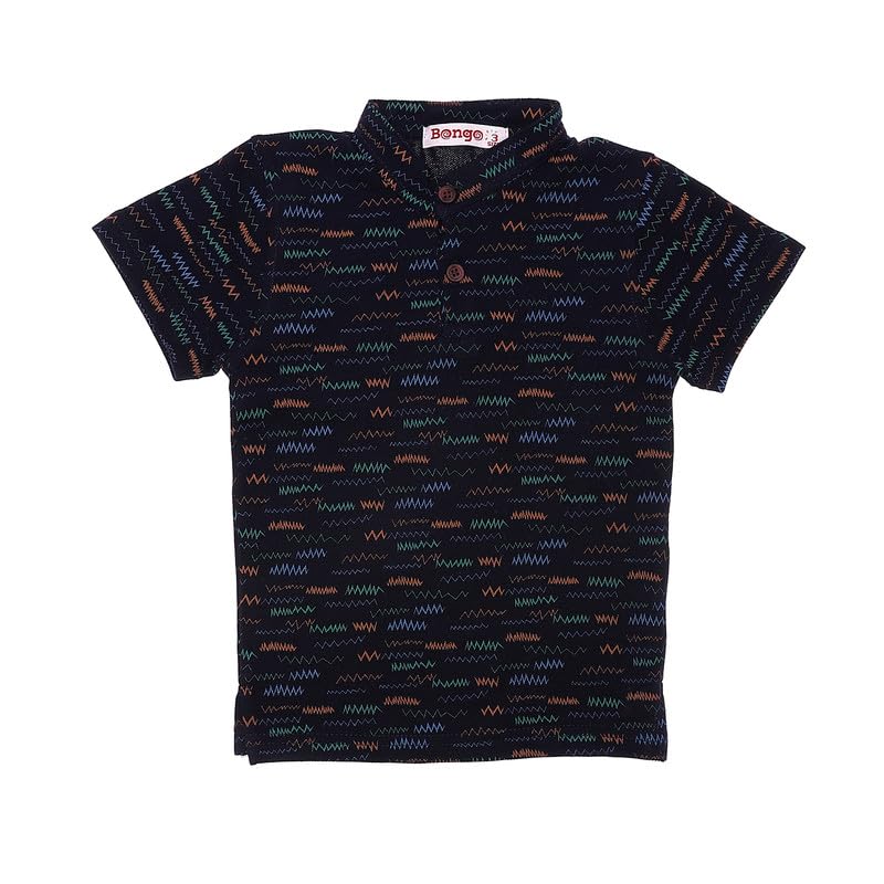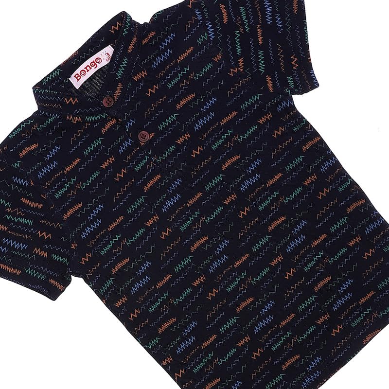 BONGO - Bongo Boy -Chevron Pattern Short Sleeves Polo Shirt Navy Blue, 2 Years