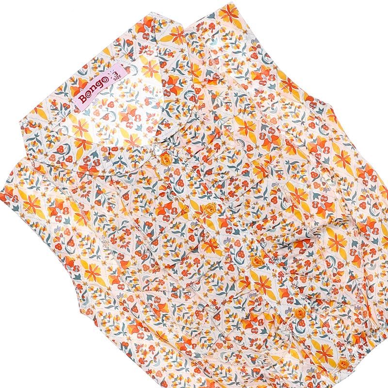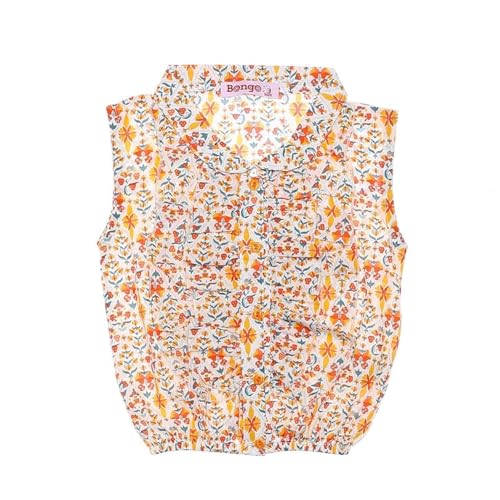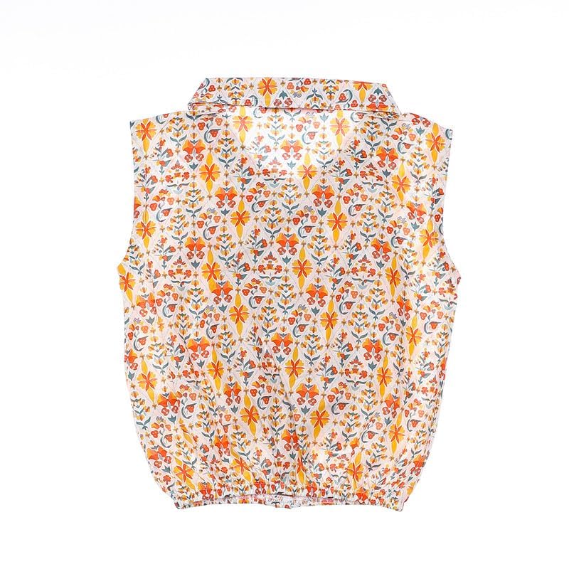 BONGO - Bongo Girl - Floral Sleeveless Blouse With Decorated Ruffles 2 Orange
