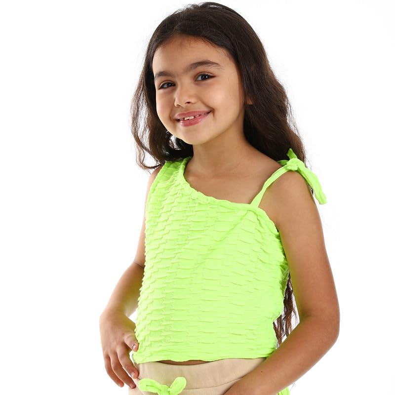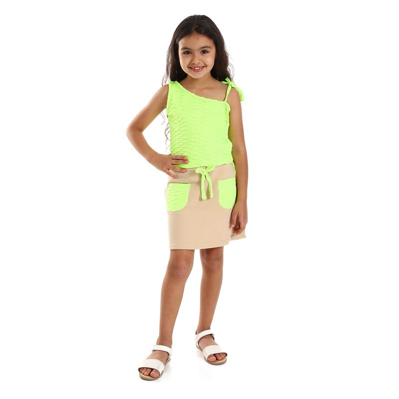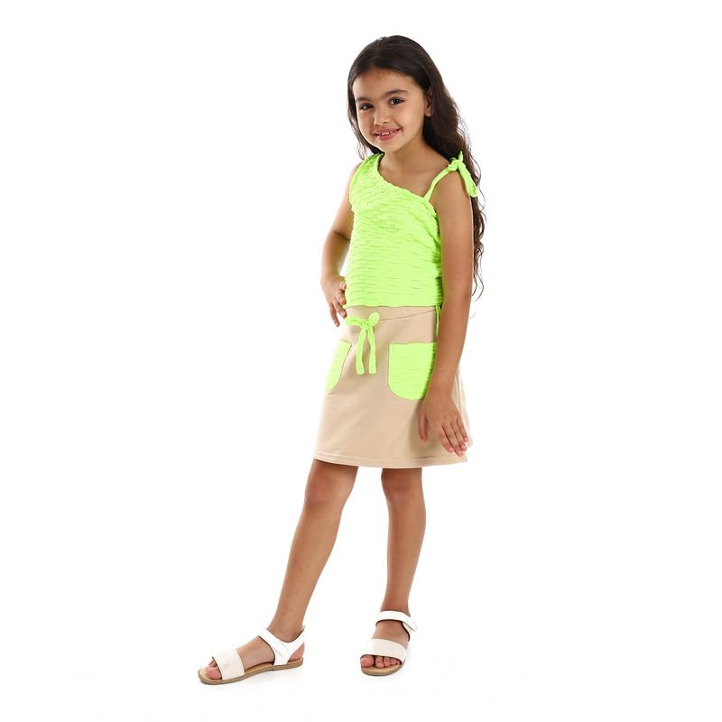 BONGO - طقم تنورة بجيبين سهلة الارتداء للبنات من بونجو, اخضر نيون