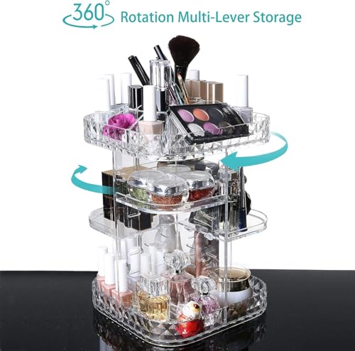 Boniry - Boniry Makeup Organizer 360 Degree Rotating Cosmetic Storage Box, DIY Adjustable Large Capacity Cosmetic Display Case Diamond Pattern Square Shelf 4 Adjustable Layer Large - 28.50 X 23 X 23 CM