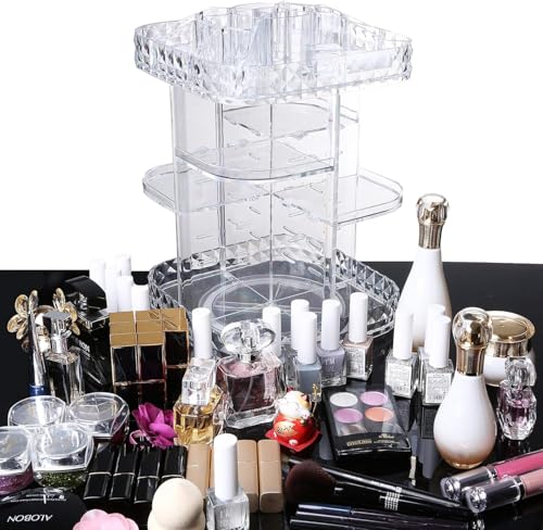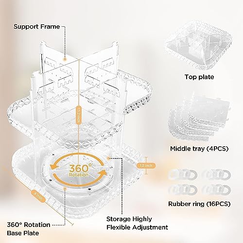 - Skincare Organiser Consists Of 1 Top Plate, 1 Base Plate, 4 Middle Tray And 2 Support Frame. Complimentary 16 Rubber Rings For Installation, 4 Layers Adjustable, Adjust Will Makeup Organizer Stand