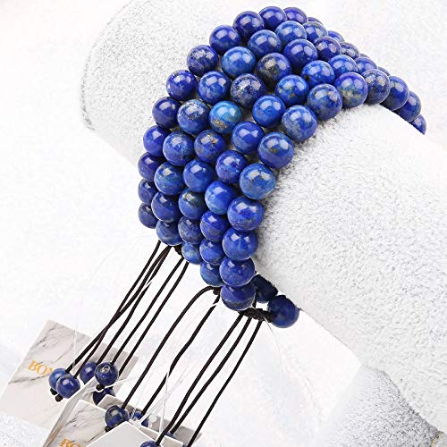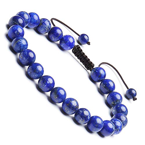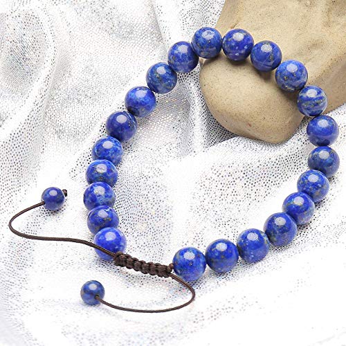 BONNY BOXX - BONNY BOXX 8MM Natural Gemstone Energy Bracelets for Unisex, Braided Rope Semi Precious Crystal Quartz Bracelets, Stress Relief Healing Reiki Macrame Bracelets, Gemstone, a-lapis lazuli