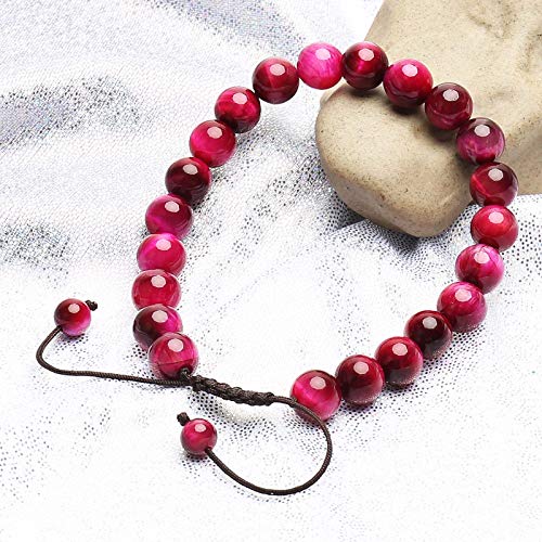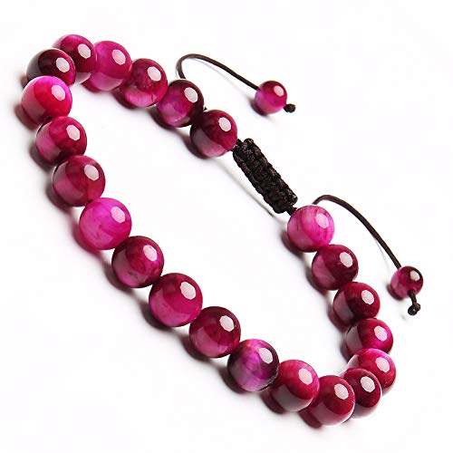 BONNY BOXX - Bonny boxx 8mm natural gemstone energy bracelets for unisex, stress relief healing reiki macrame bracelets, 8mm, gemstone, a-rose red tiger's eye- multi