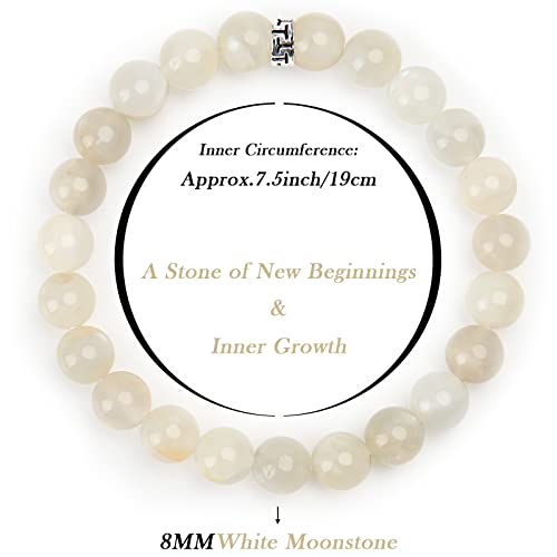 BONNY BOXX - BONNY BOXX Men and Women Natural Healing Gemstone Bracelet, 8mm, White Moonstone