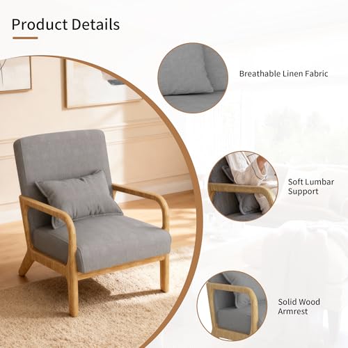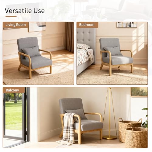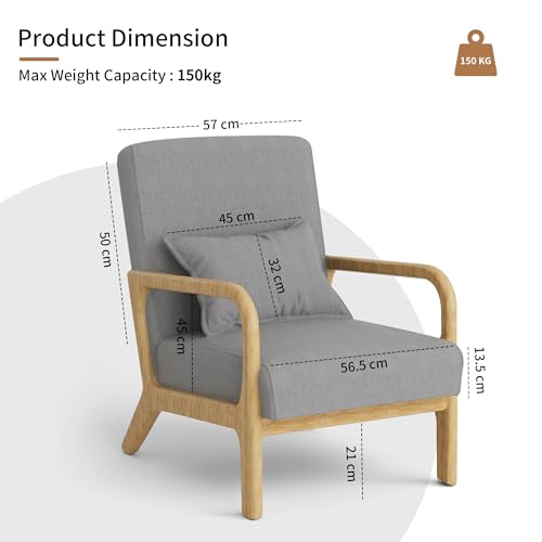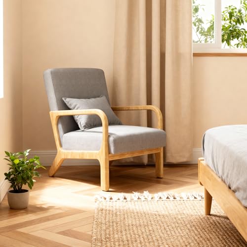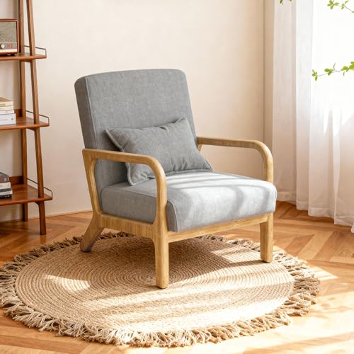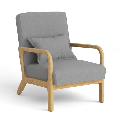 BonVache - Armchair Modern Accent Chair with Pillow Comfy Reading Chair for Living Room Bedroom Office, Grey