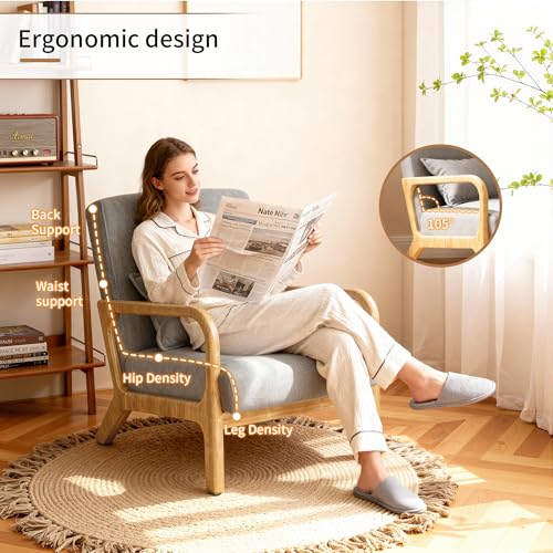 - Ergonomic Comfort:: The armchair’s backrest and armrests are thoughtfully angled to support your body naturally, providing excellent comfort for long sitting sessions. Upholstered in soft imitation linen fabric and filled with high-density sponge, it offers firm yet cozy support for a relaxing seating experience.