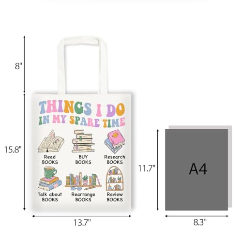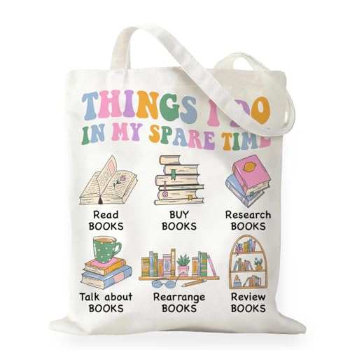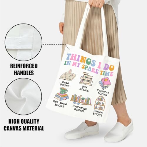 RNYJJ - Book Gifts for Women Bookworm Librarian Reader Tote Bag Things I Do In My Spare Time Book Lovers Canvas Tote Bag, Colorful, Medium