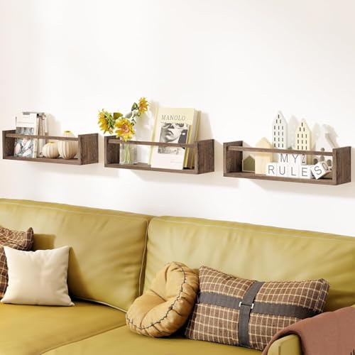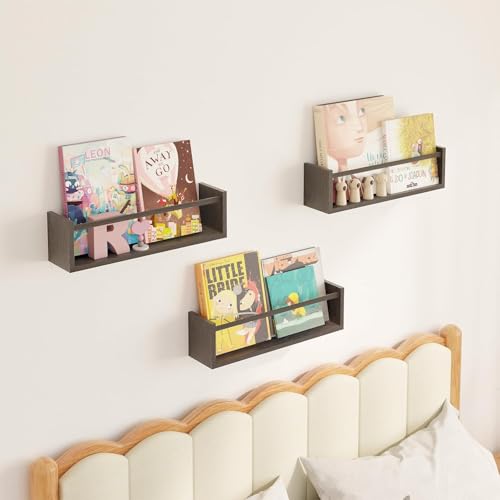 - [Widely Use] These floating bookshelves can be mounted in any room, including bathroom, kitchen or bedroom, and can be used to store books, toys, stuffed animals and other items. In addition, our wall shelves can hold up to 9 kg (20 lbs) weight when you install them firmly on the wall.