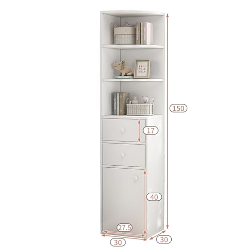 Ruication - Bookcase Wooden 6 Tier Bookshelf 1 Door 2 Drawers Storage Corner Shelf Organizer Units Modern Free Standing Cabinets Racks Open Shelves for Living Room Bedroom Study Home Office White 30x30x150cm