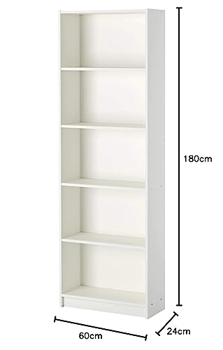 generic - مكتبة لتنظيم الكتب بعدد 5 رفوف قابلة للتعديل حسب الحاجة، بابعاد: 180سم ارتفاع و60 سم عرض و24 سم عمق - لون ابيض، خشب