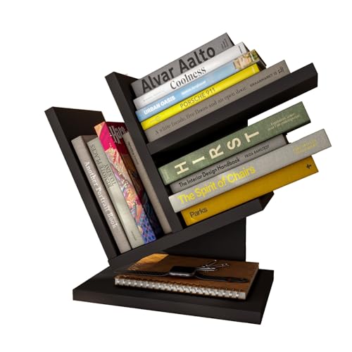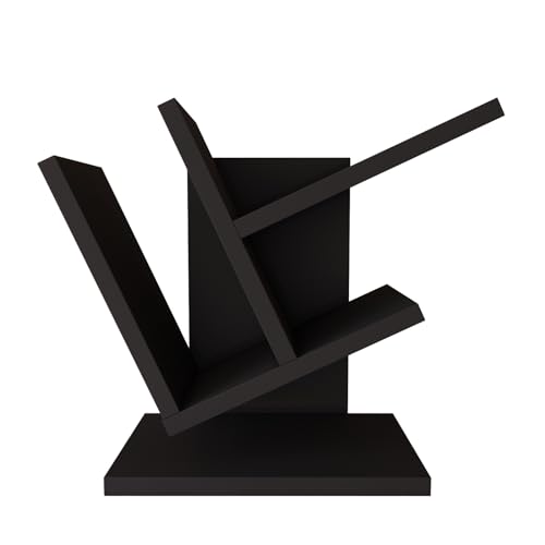 QUARTETO MÓVEIS - رف كتب على شكل شجرة من الخشب مع 4 طبقات لتنظيم الكتب والمجلات والأقراص المضغوطة، للمنزل والمكتب لتخزين الكتب والمكتب (أسود)