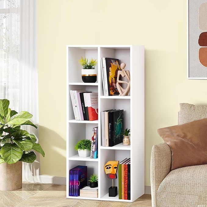 - PERFECT DESIGN: Made of wood, the bookshelf measures 19.5L x 9.75W x 43.25H inches. PLACE ARTICALLY & SPACE SAVING: The white home finish display unit features 7 open view shelves making this a perfect place for your favorite books, family photos, decorations, plants, utensils and many other items. It can be used as a multi-purpose media controller and easy to clean: the display stand design complements any decor making it a great addition to a study, bedroom, living room. Its smooth surface makes it easy to clean Simply wipe with a damp cloth to remove dirt