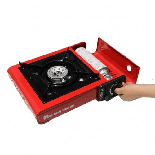 - Portable Gas Stove: Compact Gas Perfect for Trekkking, Camping, Travel, Emergency Use with Red Functional Design