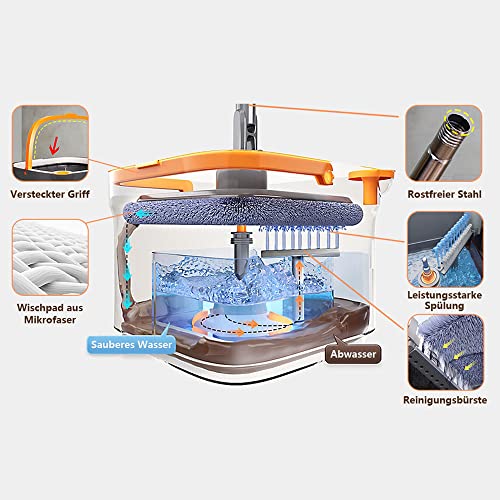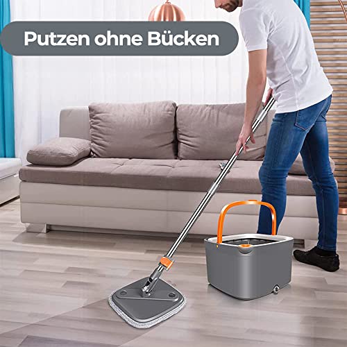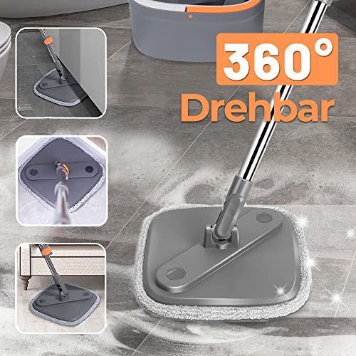 Boomersun - مجموعة تنظيف الارضية المبلولة والجافة تتكون من جردل تنظيف وشرشوبة قابلة للدوران 360 درجة مع وسادتين من المايكروفايبر قابلة للغسل لجميع انواع الارضيات من بومرسن