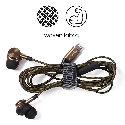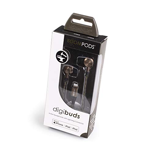 Boompods - سماعة اذن ديجيبادز لايتنينج (معتمدة من ابل ام في) , مع وصلة لايتنينج لموبايل ايفون وجهاز ايباد، كابل مجدول من القماش، مضاد للتعرق، مع ادوات تحكم سلكية من بومبودز جريه مارل، في الاذن، أخضر