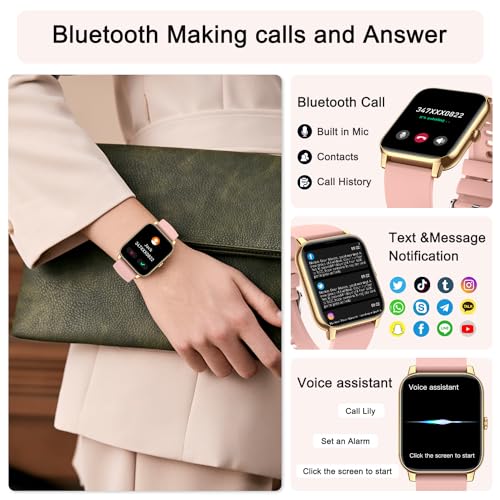 Boquaw - Smart Watch for Women Fitness Tracker: Smart Watches for Women Digital Mens Watches Make/Answer Call Waterproof Running Smartwatch Android Phone iPhone Samsung Compatible Heart Rate Monitor