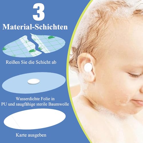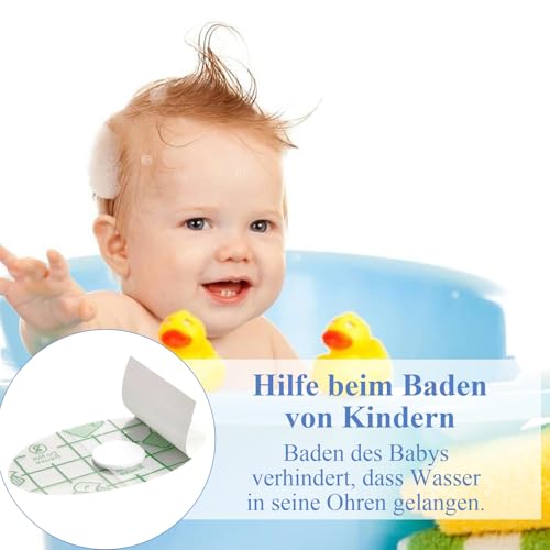 - Great design: these children's ear patches feature an easy to tear, self-adhesive design on the back for easy application. The children's ear protectors are made of waterproof material and do not get wet with water. In addition, the waterproof ear protection sticker consists of a thickened medium cotton, which can absorb a certain amount of water droplets and thus effectively prevents water from entering the ear.