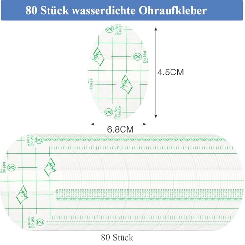 BORISCA - Pack of 80 Ear Plasters Waterproof Children, Disposable Ear Waterproof Stickers, Ultra Thin Waterproof Ear Patches, Transparent Ear Covers Patch, Earmuffs for Showering, Swimming, Surfing