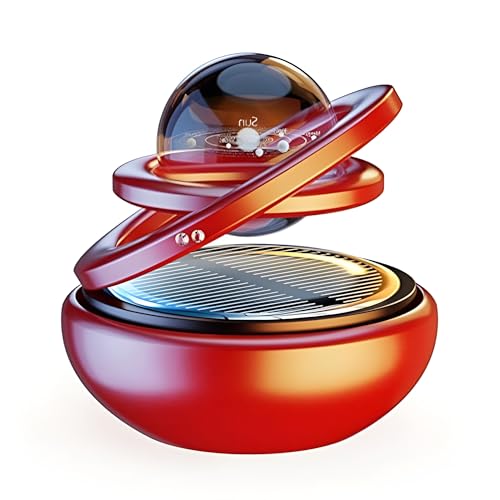 BORTONY - معطر هواء للسيارة من بورتوني، موزع روائح عطرية دوار يعمل بالطاقة الشمسية بتصميم طائرة هليكوبتر يعمل بالطاقة الشمسية، اكسسوارات ديكور داخلي يدوم طويلا للسيارة والمنزل (منقي هواء احمر)