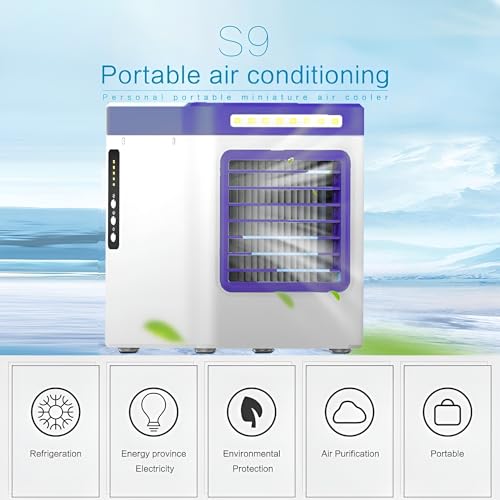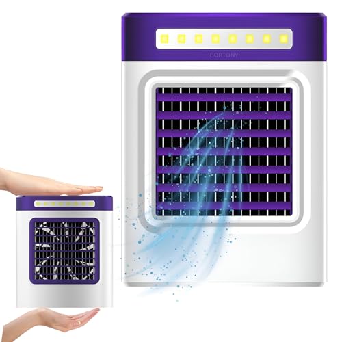 BORTONY - Portable Air Conditioning Fan S9 – Mini Personal Air Cooler with 3-Speed Wind, 500ml Water Tank, LED Lights Quiet Mini Air Conditioner Desktop Cooling Fan for Home, Office and Travel