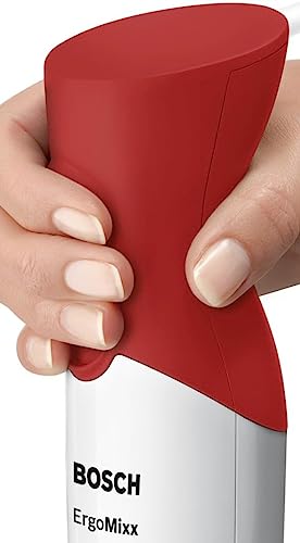 BOSCH - Bosch Hand blender ErgoMixx 450 Watt Stainless Steel Mixing Wand, QuattroBlade, Two Speeds, Included Measuring Beaker, Made in Slovenia, White, Red – MSM64110