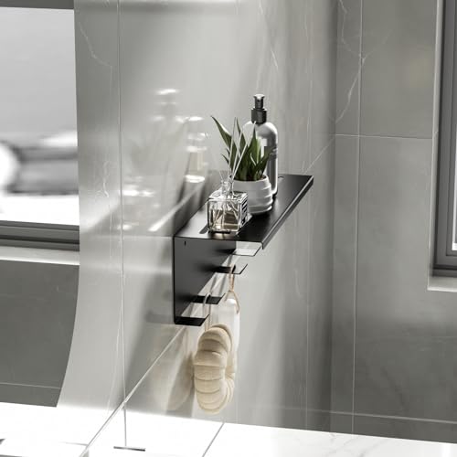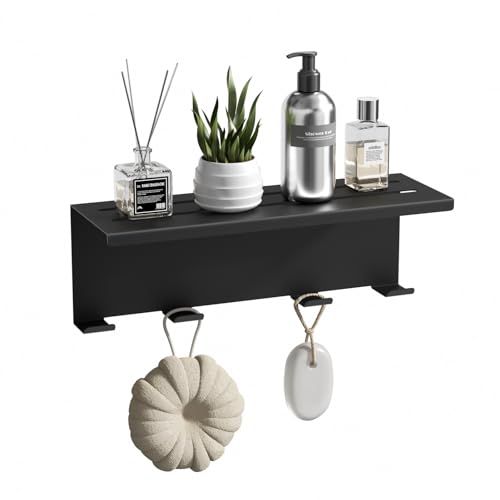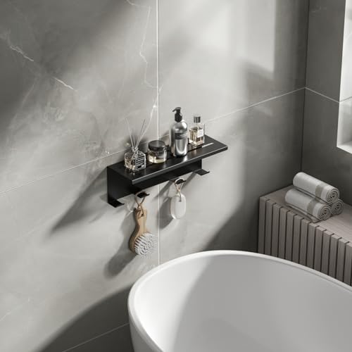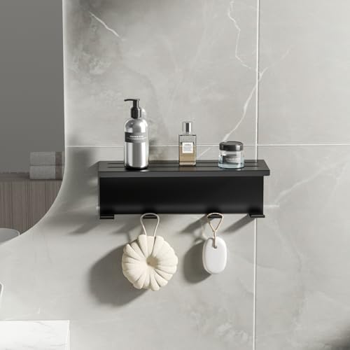 - 【Convenient Hanging】The shelf comes equipped with 4 bathrobe hooks underneath,providing convenient hanging options for bathrobes,towels,and other shower accessories,keeping your bathroom neat and organized.