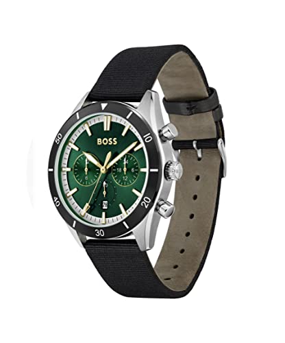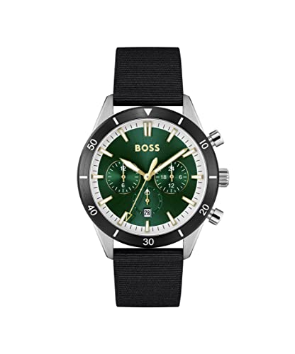 BOSS - BOSS Analogue Multifunction Quartz Watch for Men with Black Ocean Plastic Textile Strap - 1513936, Green, strap