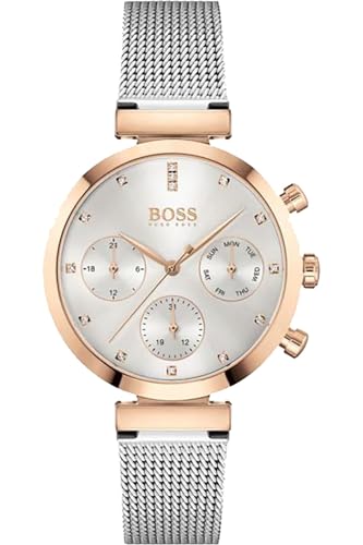 BOSS - BOSS Analogue Multifunction Quartz Watch for Women with Silver Stainless Steel Mesh Bracelet, 1502551