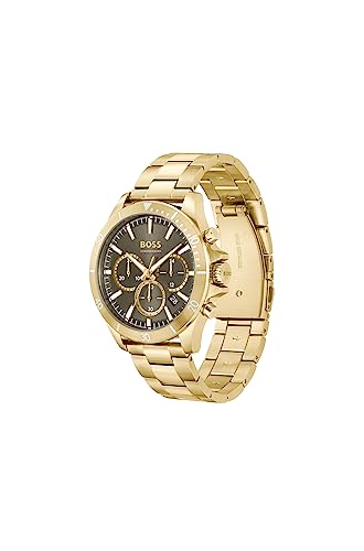 BOSS - بوس ساعة كوارتز انالوج بعقارب وسوار من الستانلس ستيل للرجال 1514059 اخضر زيتوني سوار بسوار ذهبي