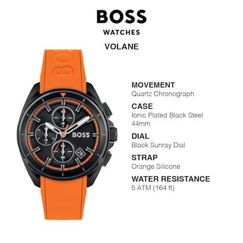 Boss - ساعة كوارتز ستانلس ستيل بسوار سيليكون للرجال من بوس فولان، لون: برتقالي (الموديل: 1513957)