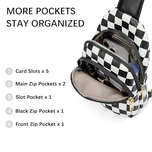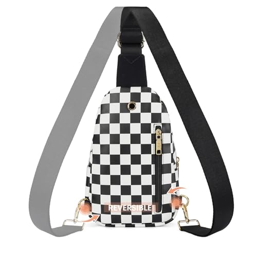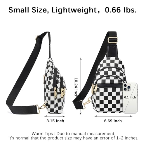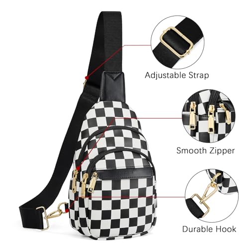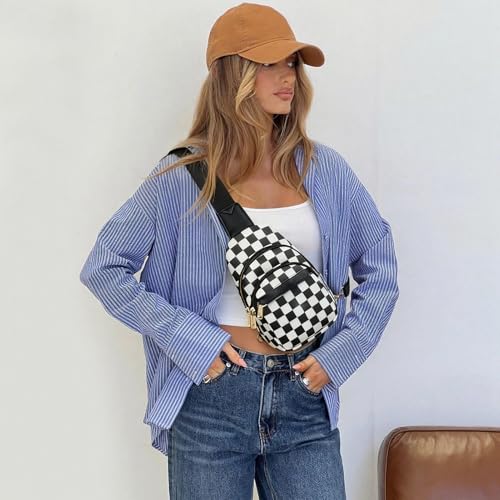 Bostanten - BOSTANTEN Small Sling Bag for Women Leather Crossbody Bags Fanny Pack Chest Bag for Travel, A-checkered Black, Checkered