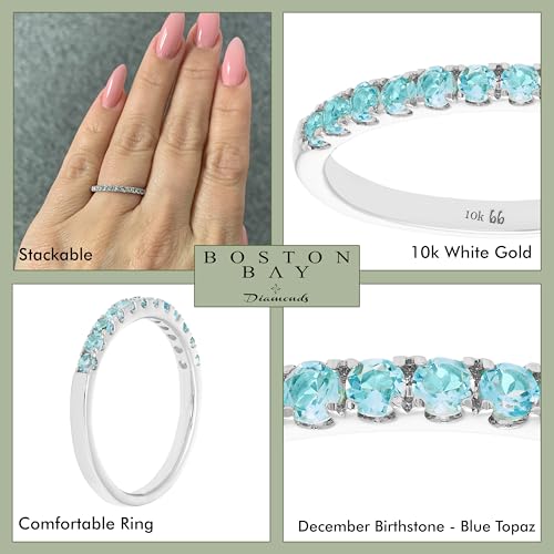 Boston Bay Diamonds - خاتم قابل للتكديس من الذهب عيار 10 قيراط او 14 قيراط من الاحجار الكريمة والذكرى السنوية للزفاف - اختيار اللون الذهبي، احجار كريمة