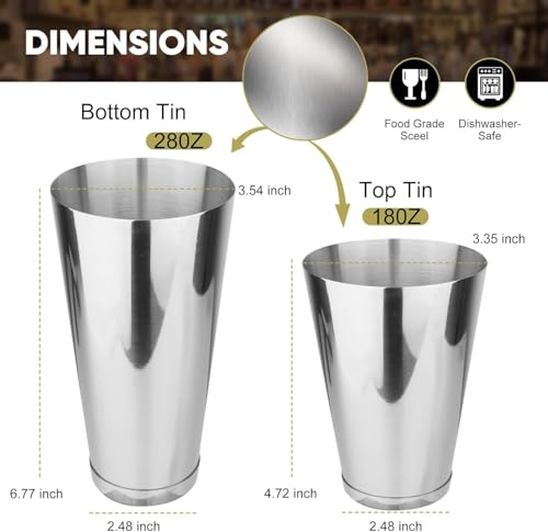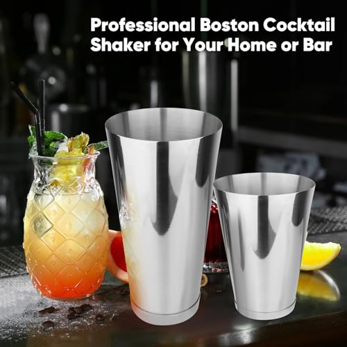 - 【Essential for Bartending Mastery】Crafted with meticulous attention to detail, our Boston Cocktail Shaker is a quintessential tool for bartenders. Featuring a precise two-piece construction, it comprises 18 oz and 28 oz stainless steel weighted shaker tins, facilitating seamless mixing and pouring. Tailored for both novices and seasoned professionals, it's a must-have for elevating any bartending repertoire.