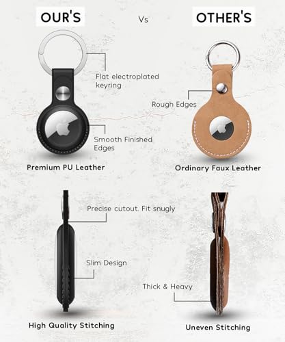 - VEGAN FRIENDLY MATERIAL: Vegan Friendly Material has been used to Produce these Premium Quality PU Leather Keyrings for Apple AirTag, the Ring of Holders for AirTag are made of Metal which is Naturally a Vegan material. No Animal was harmed during production process of these AirTag Covers.