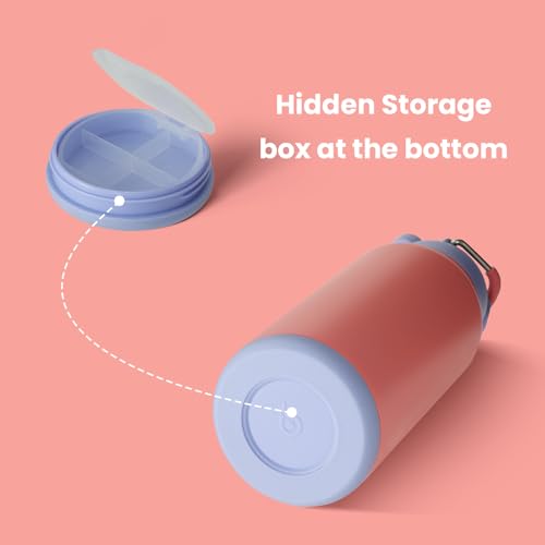 - 【With Pill Box】: There is a storage space at the bottom of the 32 oz water bottle that can be swiveled open. You can use this space to store pills and vitamins, even coins and keys.