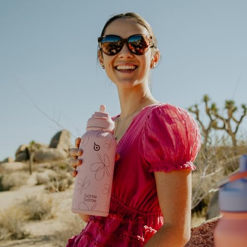 BOTTLE BOTTLE - زجاجة مياه رياضية معزولة من الفولاذ المقاوم للصدأ بشفاطة بتصميم غطاء مزدوج للاستخدام في الجيم ومع صندوق حبوب الدواء من بوتل بوتل، سعة 946 مل (زهرة وردية)