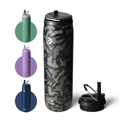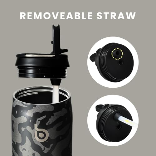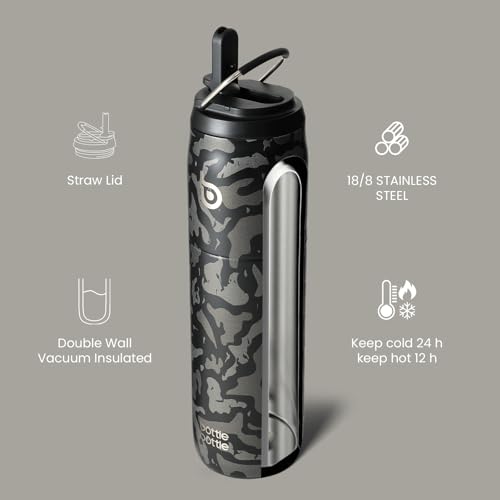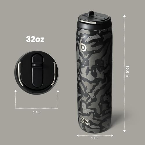 BOTTLE BOTTLE - BOTTLE BOTTLE Stainless Steel Water Bottle with Straw and Lid 32 oz Vacuum Insulated Cup Stay Cold for 24 Hrs Hot for 12 Hrs, Leak-Proof Wide Mouth Water Bottles for Men,Black Camouflage