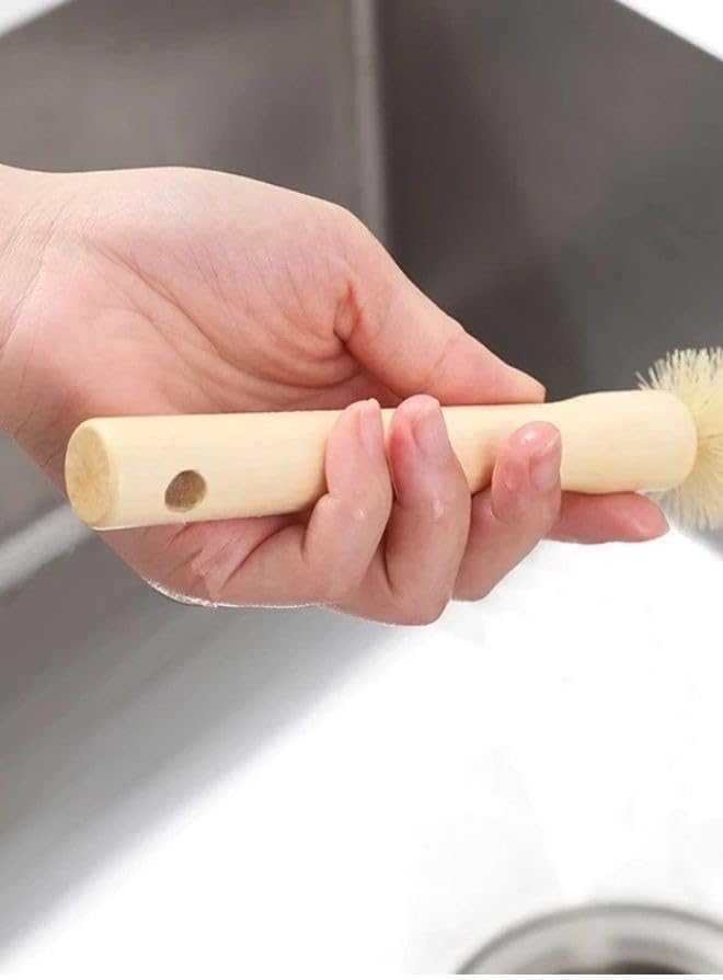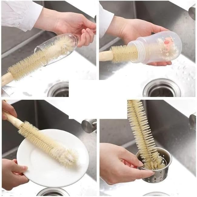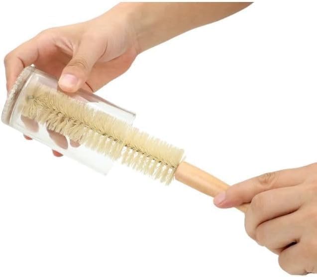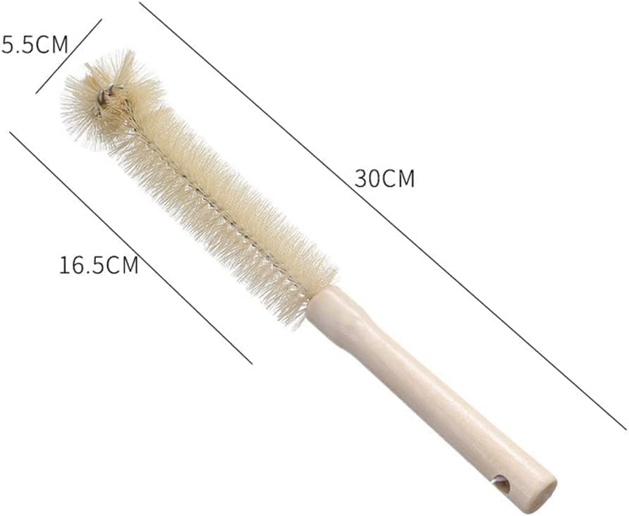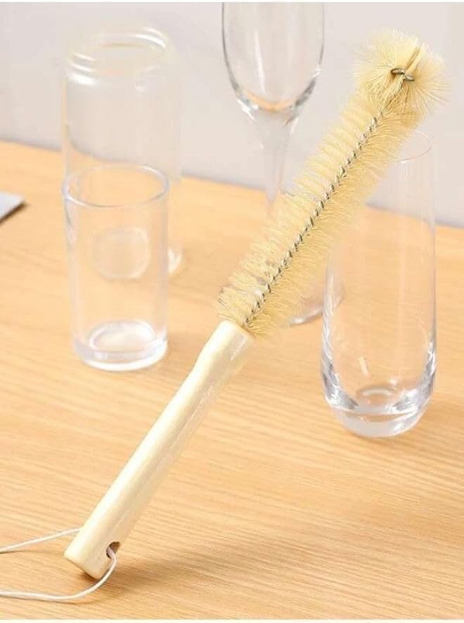 Generic - فرشاة تنظيف الزجاجات بمقبض خشبي، فرشاة بشعيرات صغيرة للاكواب والغلايات والمزهريات